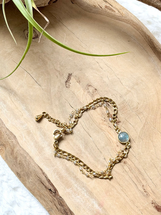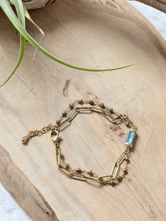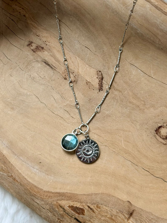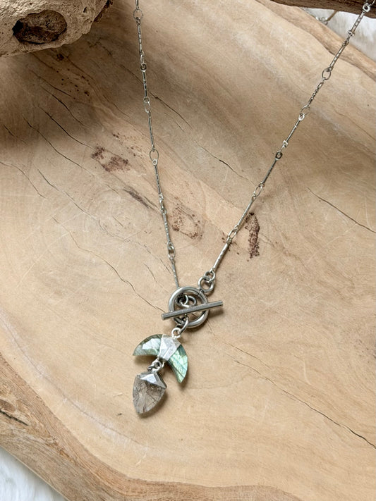 Labradorite + Rutile Quartz Stainless Toggle Necklace