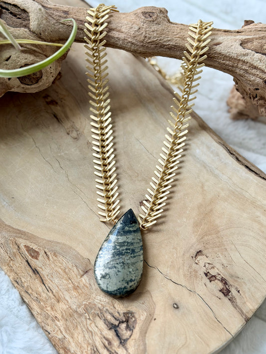 Pyrite in Magnetite + Matte Gold Fishbone Chain Necklace