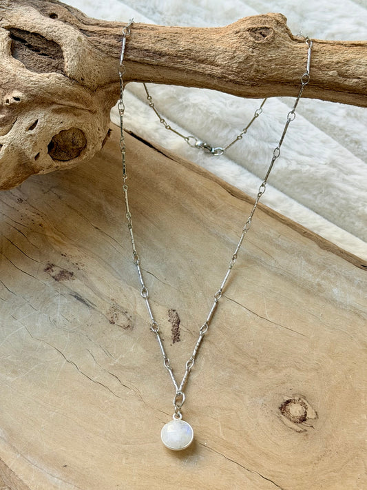 Rainbow Moonstone + Stainless Steel Necklace