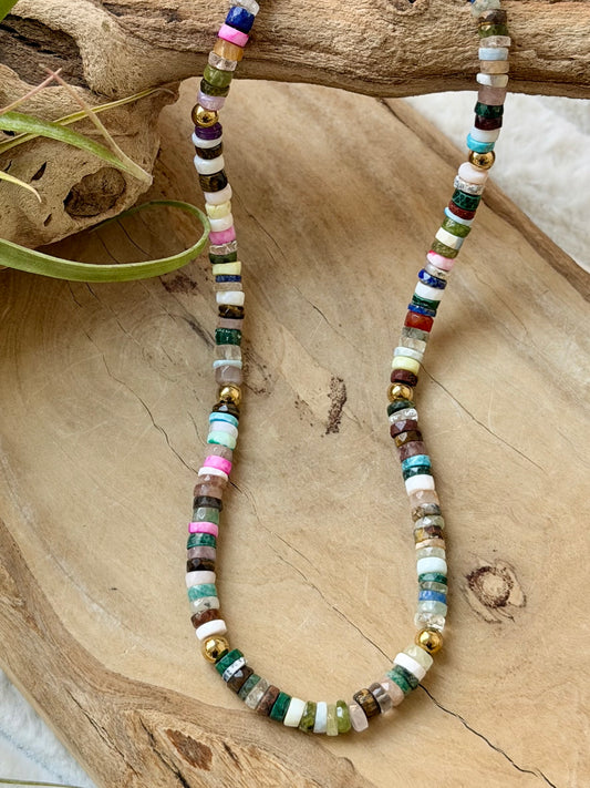 Mixed Gems + Gold Beaded Necklace