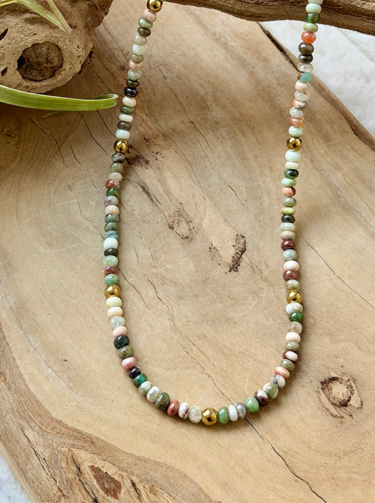 Mixed Opal + Gold Beaded Necklace
