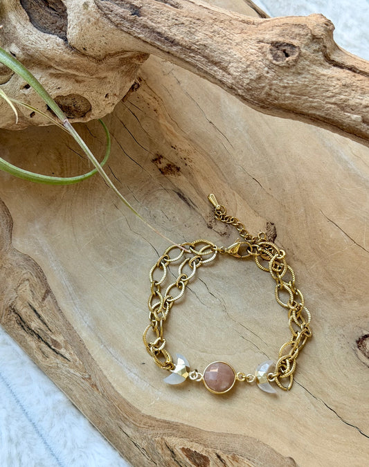 Peach Moonstone + Chalcedony Gold Moon Bracelet