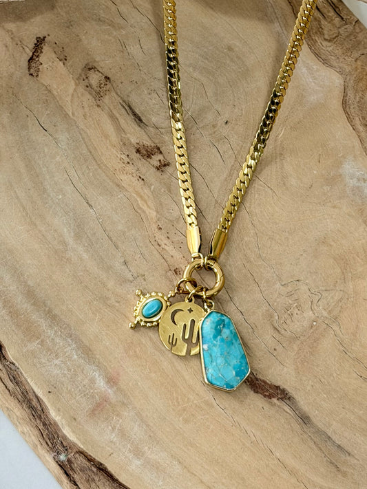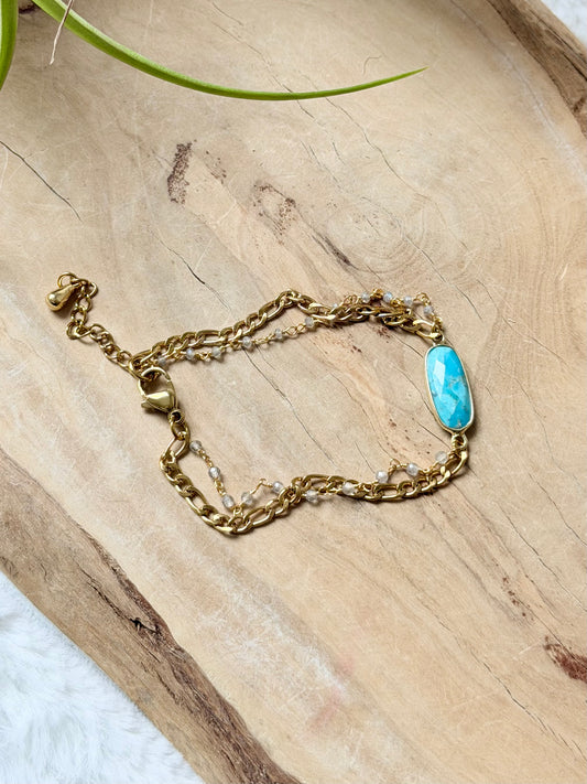 Turquoise + Labradorite Duet Bracelet in Gold Stainless Steel