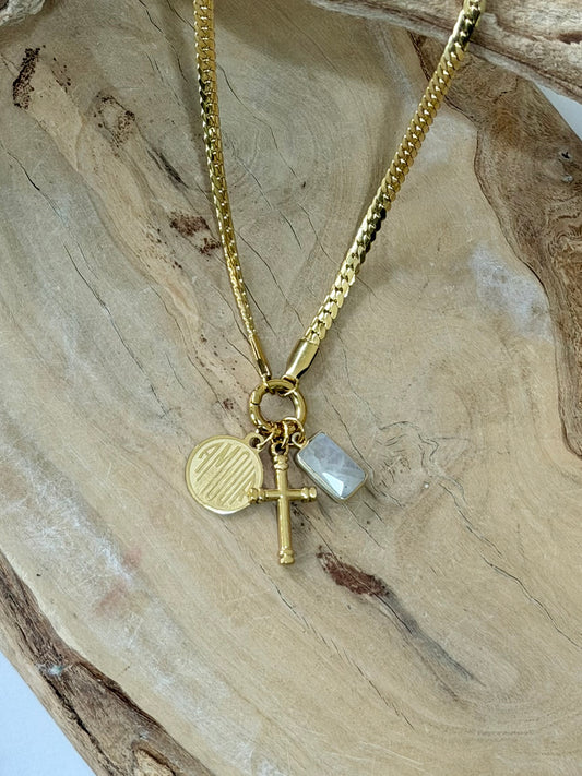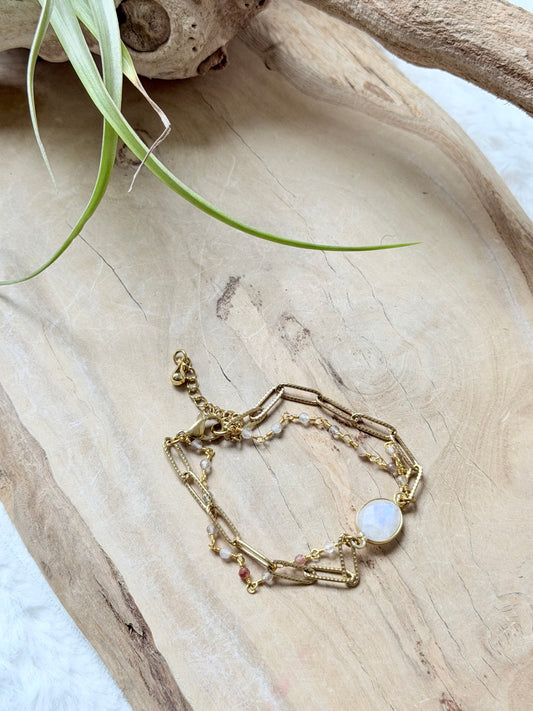 Rainbow Moonstone + Quartz Duet Bracelet in Gold Stainless Steel