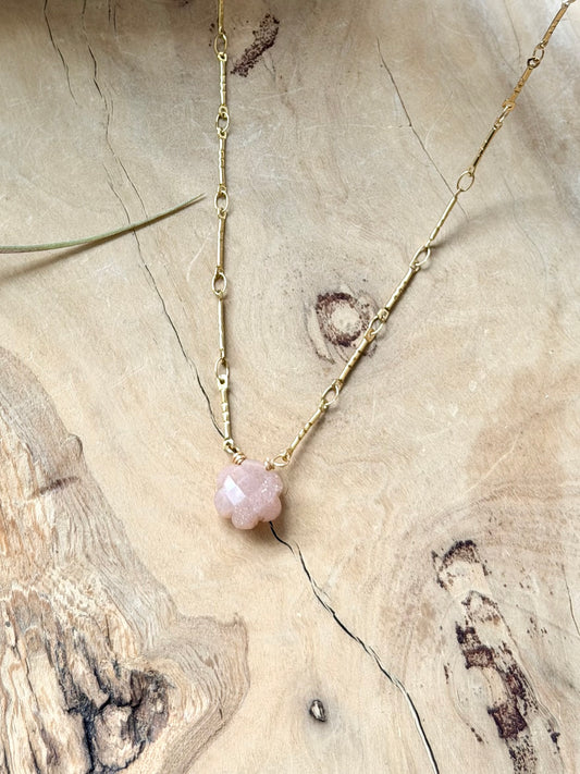 Peach Moonstone Flower + Gold Stainless Steel Necklace