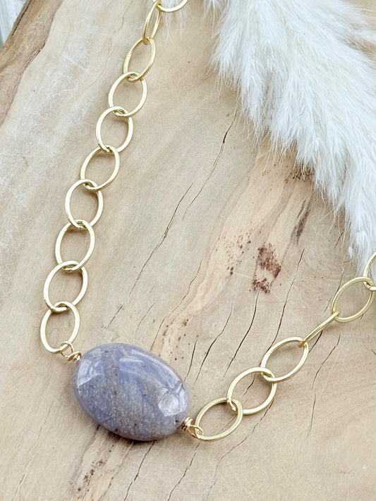 Amethyst Sage Agate + Matte Gold Chunky Necklace