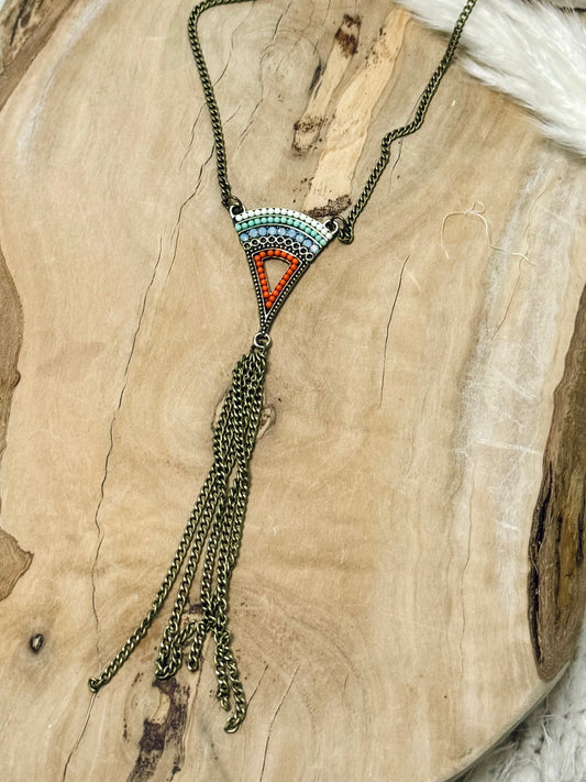 Antique Brass Lariat Necklace