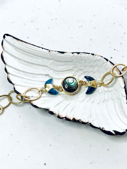 Apatite + Abalone Gold Moon Phase Bracelet