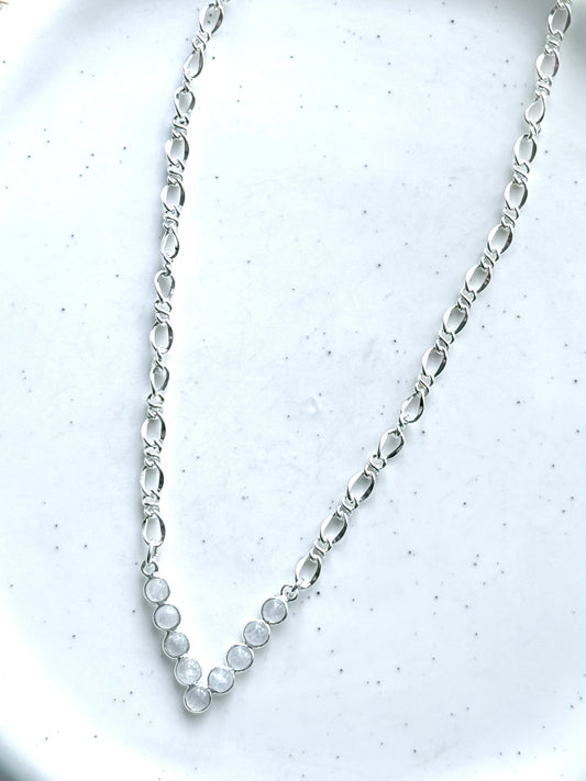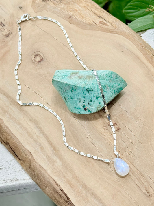 Rainbow Moonstone + Silver V-Shaped Necklace