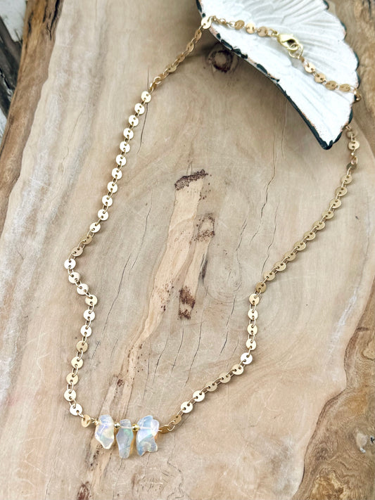 Rustic Ethiopian Opal + Moonstone Matte Gold Necklace