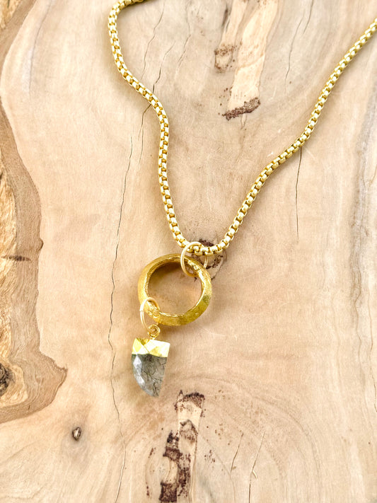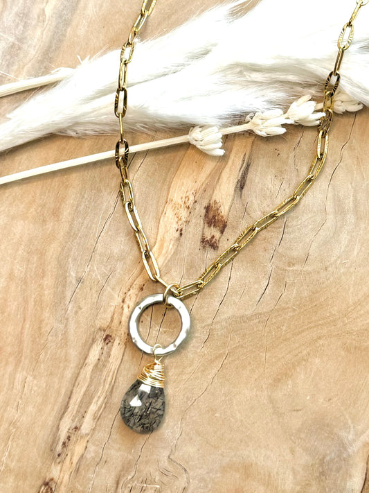 Rutilized Quartz Moon Phase + Gold Stainless Steel Necklace