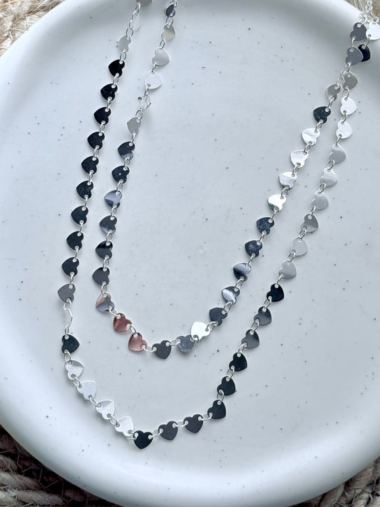 Silver Duet Anklet (Embossed Oval + Bar Chains)