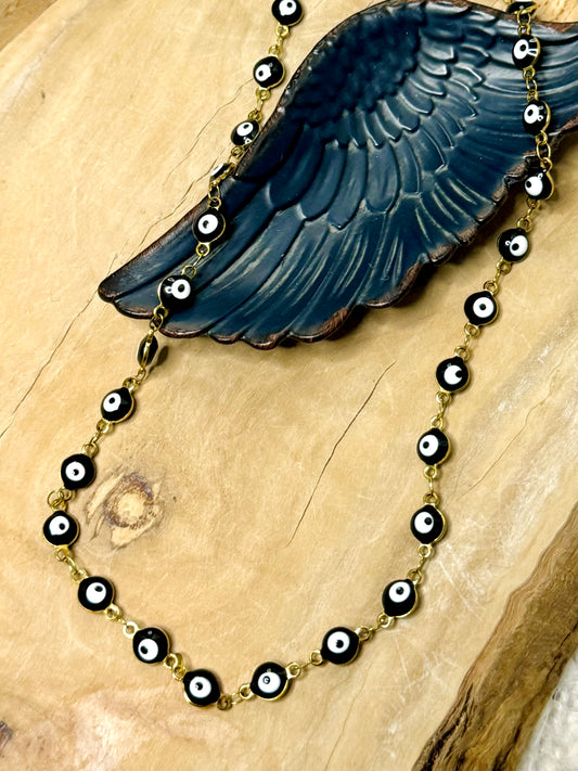 Black + White Evil Eye Chain Necklace