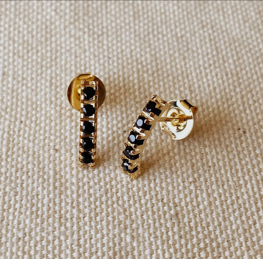 Black Crystal + Gold Curved Bar Earrings