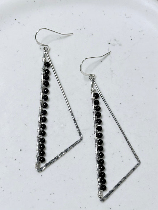 Black Onyx + Silver Large Triangle Earrings
