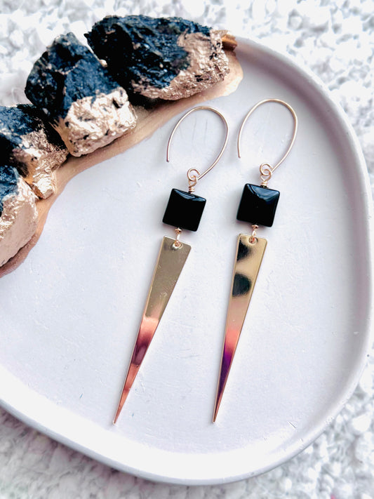 Black Onyx + Gold Spike Earrings