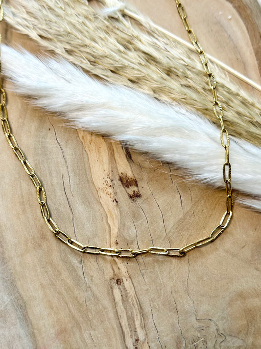Waterproof Gold Textured Paperclip Necklace