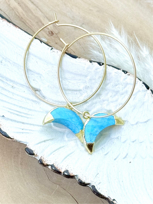 Turquoise Moon + Matte Gold Hoop Earrings