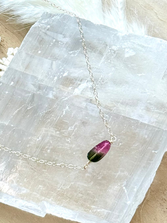 Watermelon Tourmaline + Gold Filled Necklace