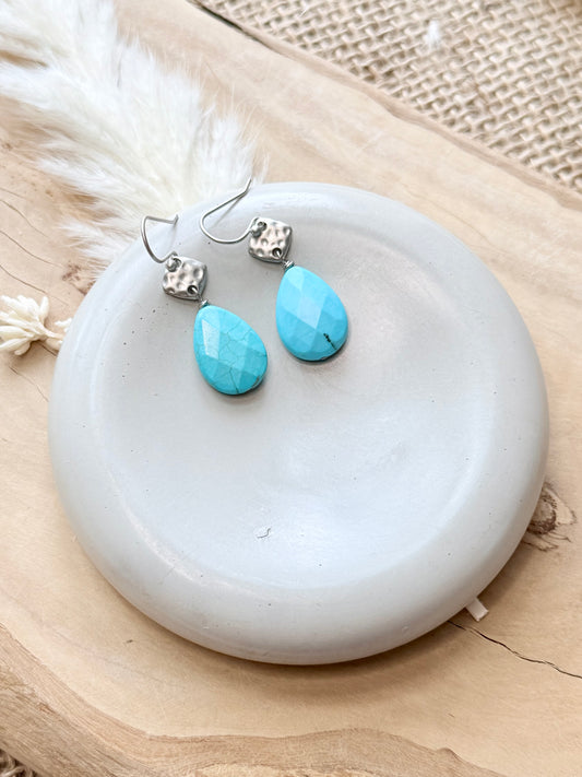 Turquoise + Matte Silver Diamond Earrings