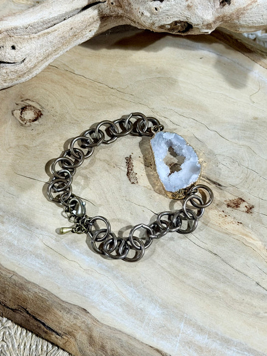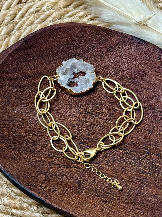 Wavy Evil Eye + Gold Textured Chain Bracelet