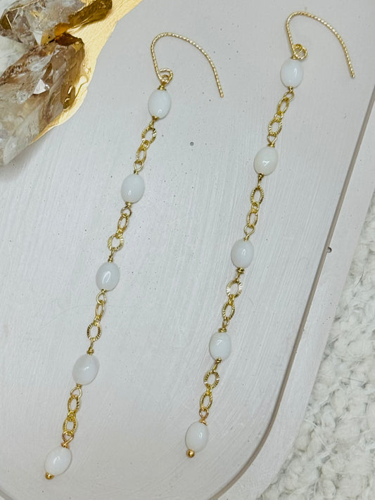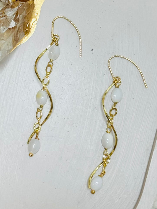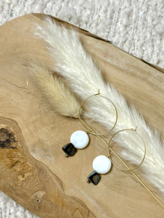White Opal + Spanish Abalone Matte Gold Hoop Earrings