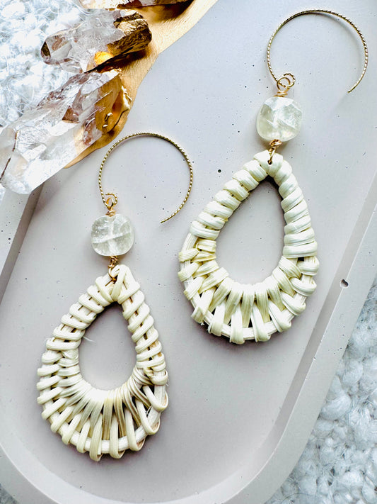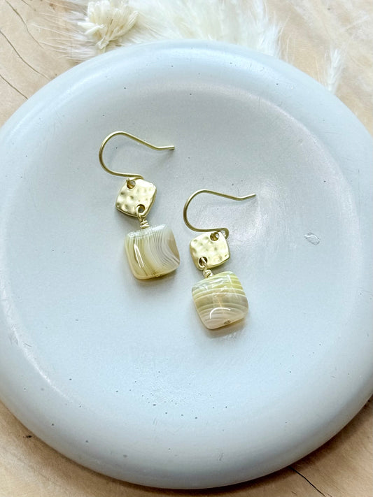 Yellow Botswana Agate + Matte Gold Diamond Earrings