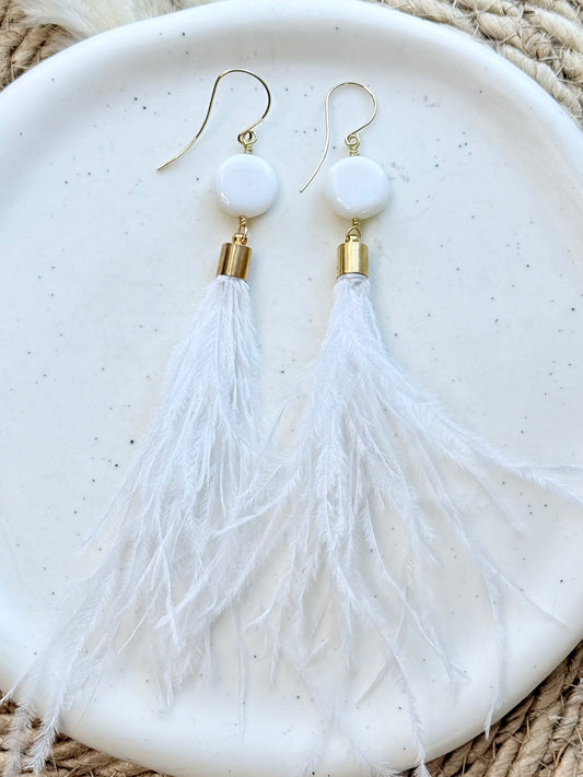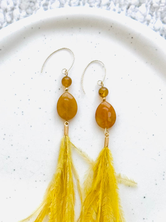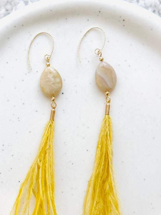 Yellow Botswana Agate + Gold Yellow Feather Earrings