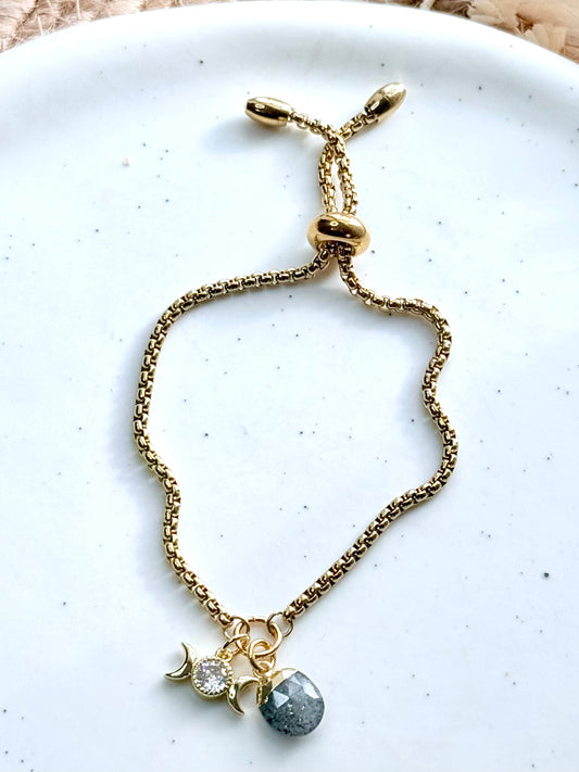 Black Sunstone + Gold Moon Slider Bracelet