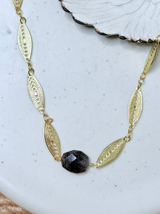 Black Sunstone + Gold Filigree Necklace