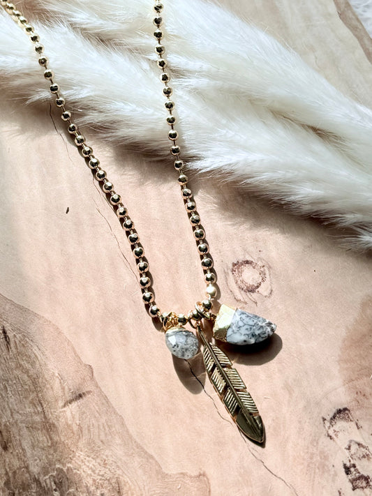 Black Sunstone + Dendritic Opal Gold Charm Necklace