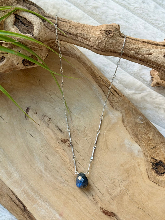 Black Labradorite + Silver Pendant Necklace