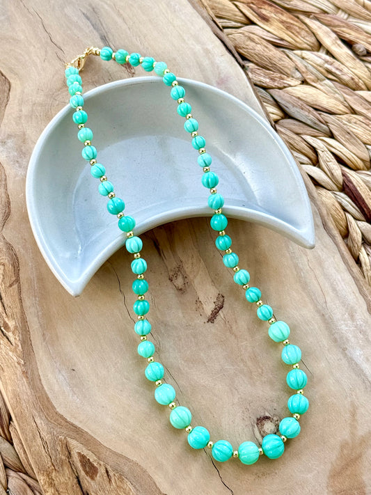 Luxe Ombre Australian Chrysoprase + Gold Beaded Necklace
