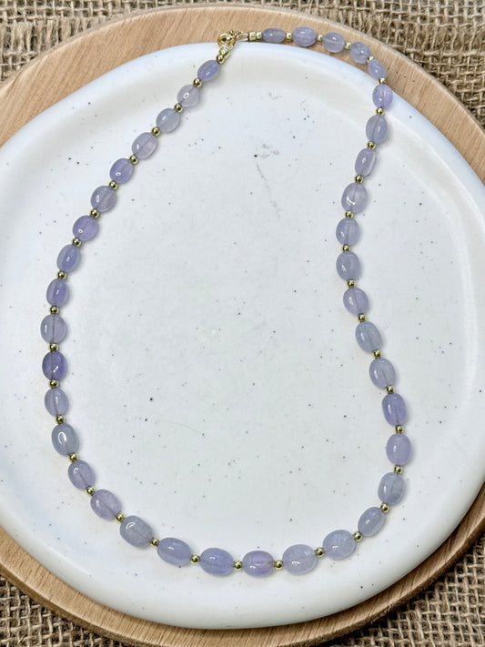 Skin on Blue Chalcedony + Gold Chunky Beaded Necklace