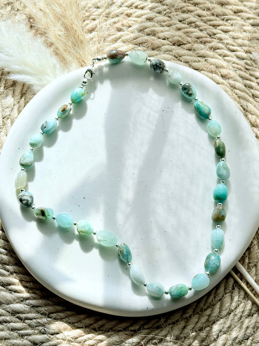 Luxe Peruvian Blue Opal + Sterling Silver Beaded Necklace