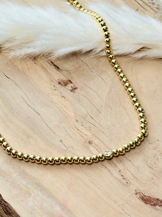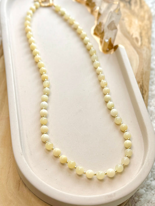 Neutral Chrysoberyl + Gold Beaded Necklace