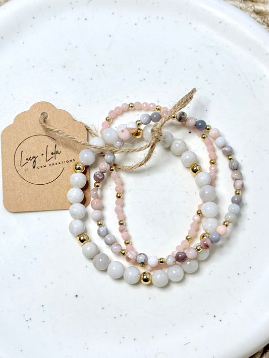 Pink Opal + Agate in Gold Stack (3-stack)