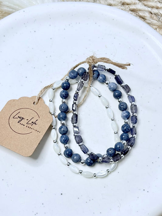 Blue Sponge Coral + Iolite in Silver Stack (3-stack)