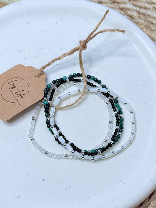 Malachite + Jade in Silver Stack (4-stack)