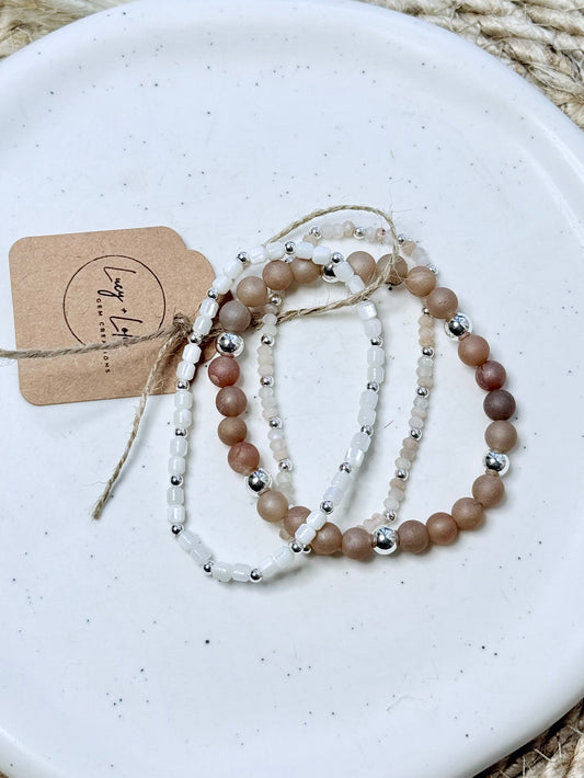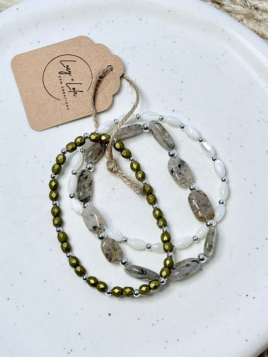 Moss Quartz + Cream in Silver Stack (3-stack)