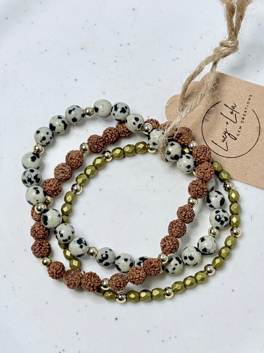 Dalmatian Jasper + Cream in Silver Stack (3-stack)