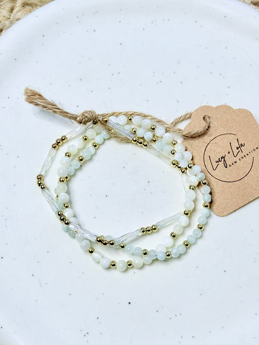 Green Moonstone + Cream in Gold Stack (3-stack)