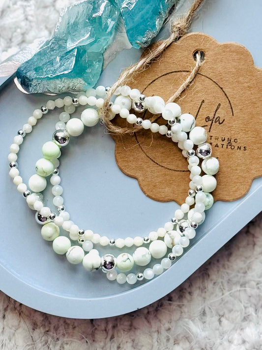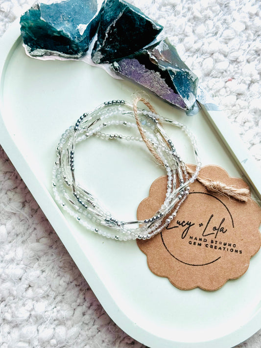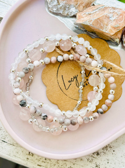 Rose Quartz + Green Moonstone in Silver (4-stack)Regular price $40.00 USDRegular priceUnit price / per-