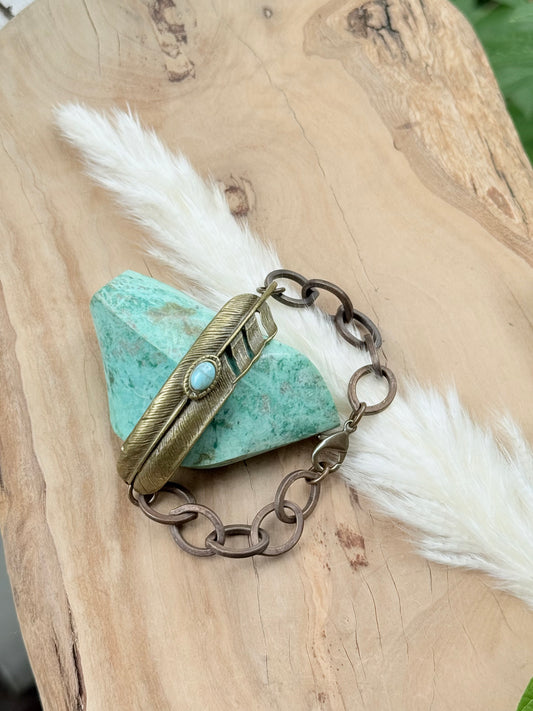 Brown Brass Leaf + Moonstone Mixed Metal Chain Bracelet