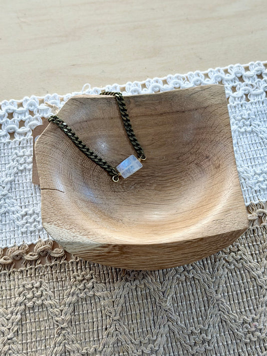 Rainbow Moonstone + Brass Ball Charm Bracelet