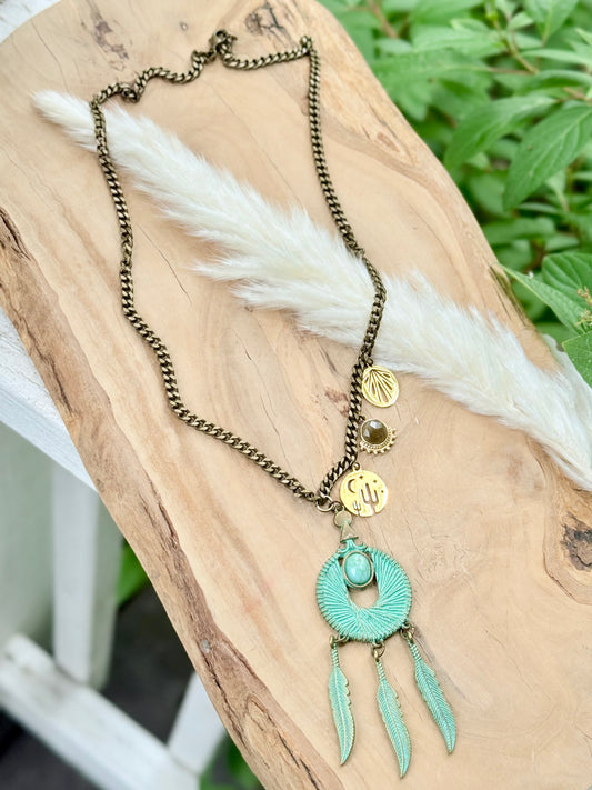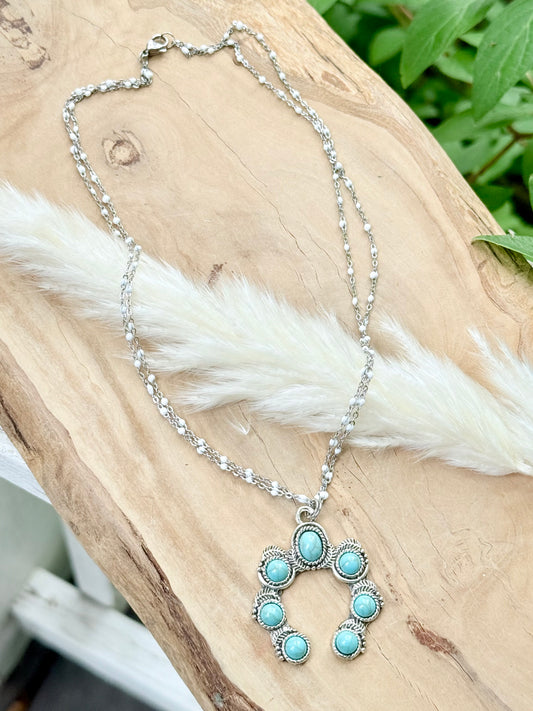 Turquoise + Mixed Metal Squash Blossom Necklace