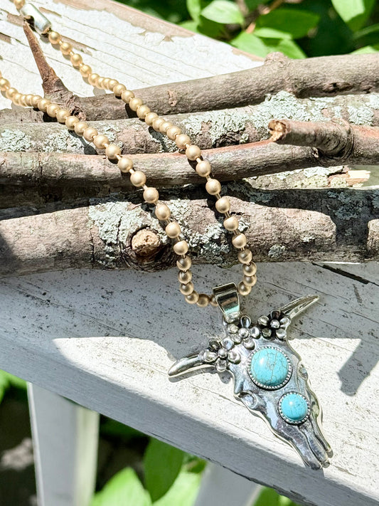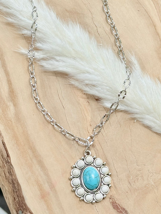 Howlite + Sleeping Beauty Turquoise Antique Silver Necklace