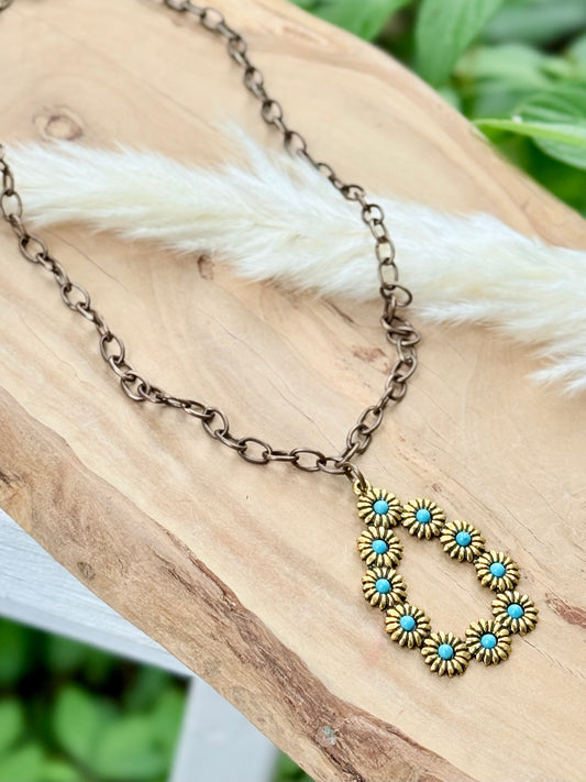 Turquoise + Gold Mixed Metal Daisy Necklace
