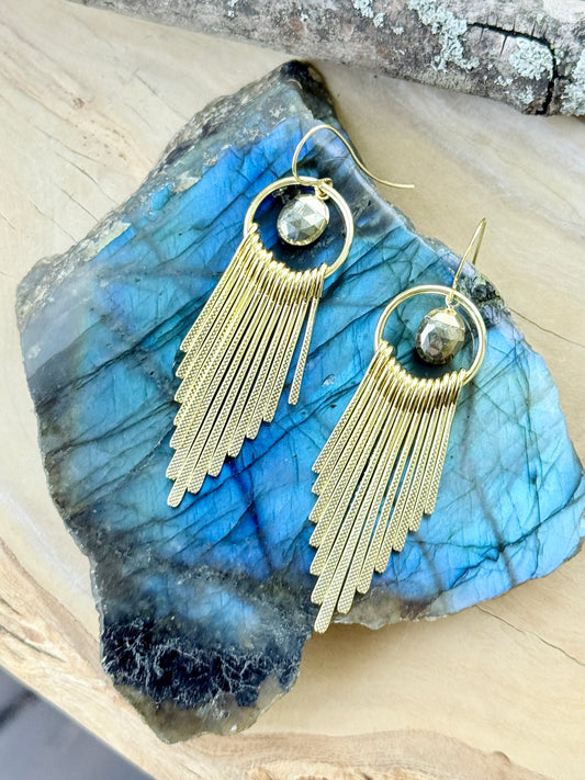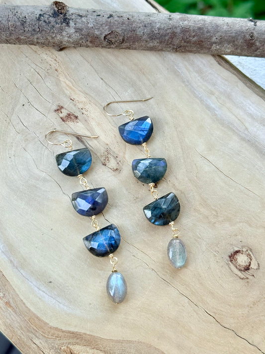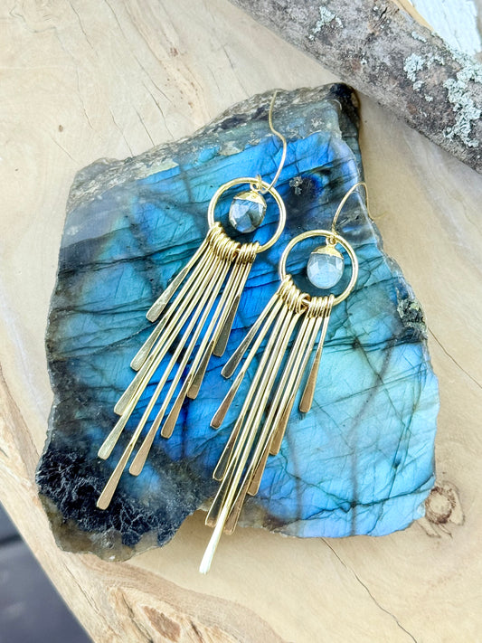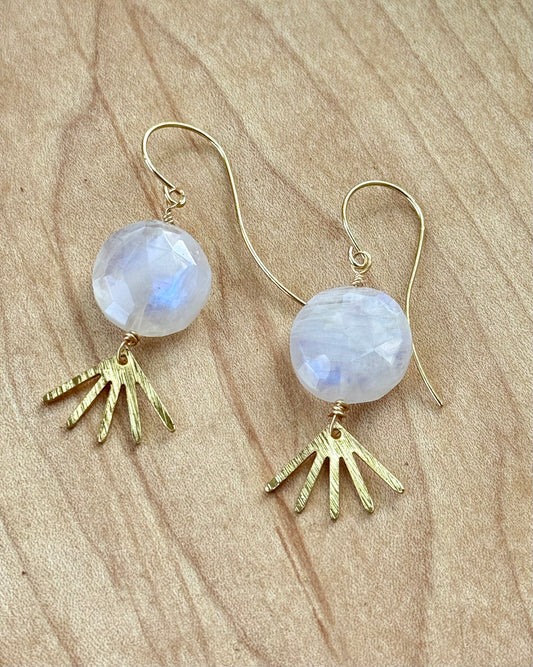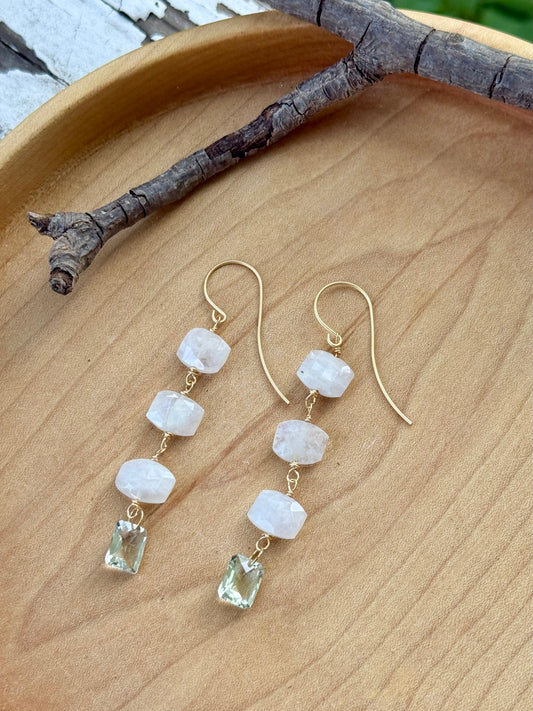 Rainbow Moonstone + Green Amethyst Gold Earrings
