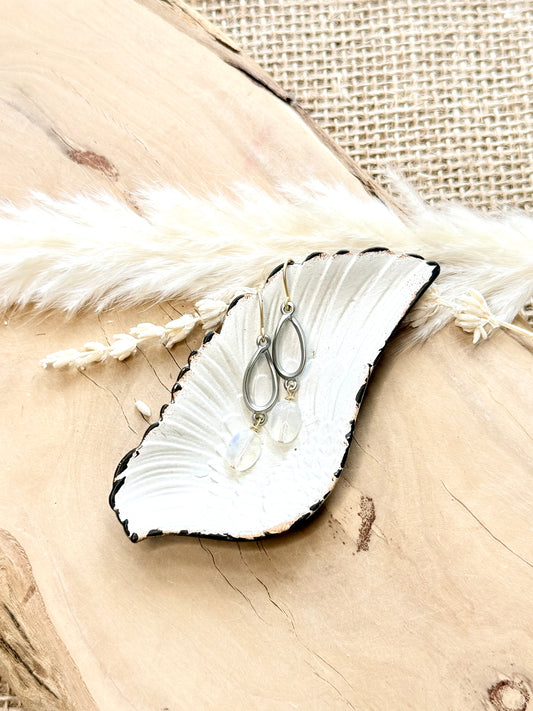 Moonstone + Matte Mixed Metal Twist Earrings